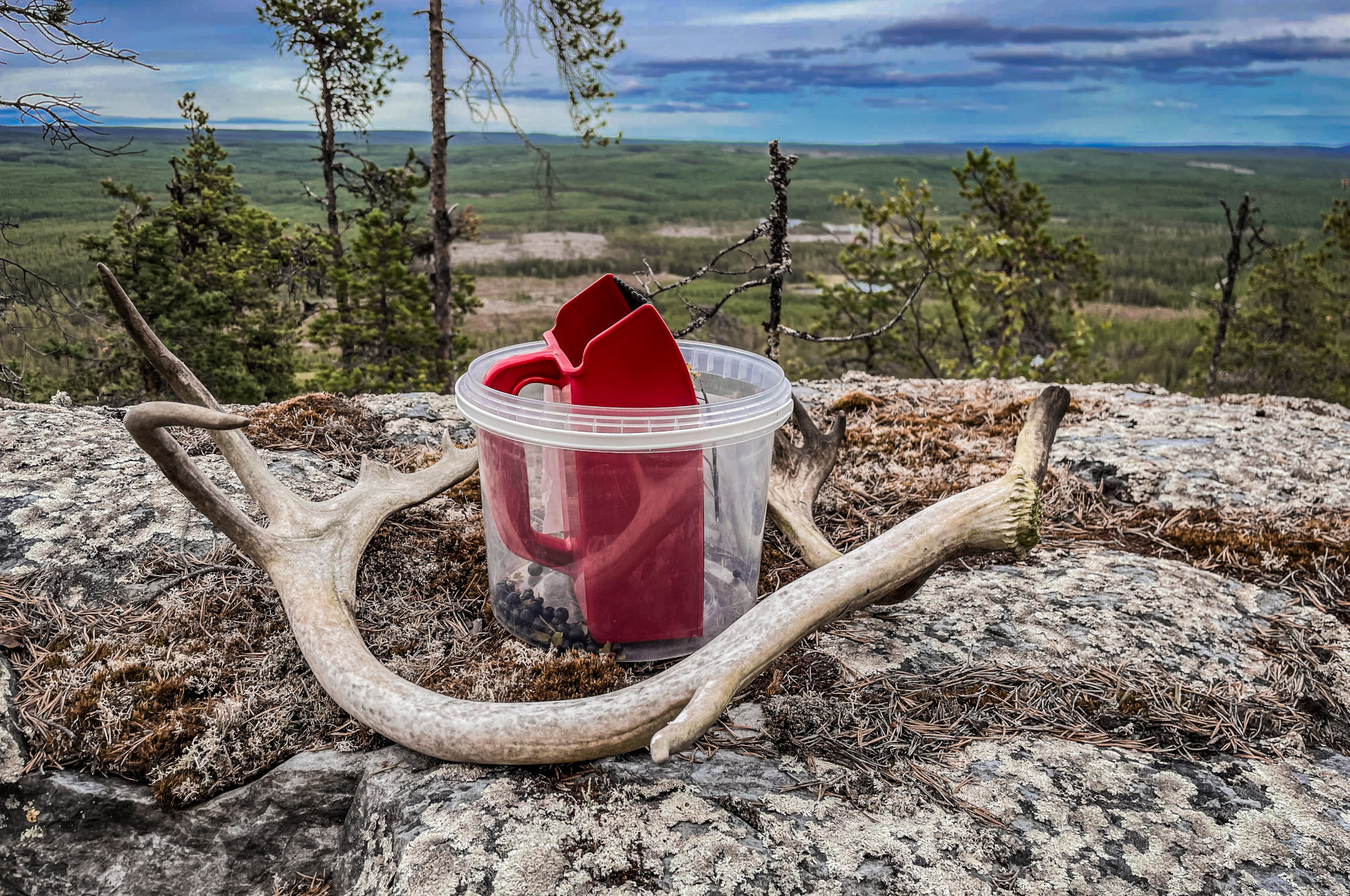 Bosbessen plukken op de Stortjärnberget. Ook buiten de paden vind je rendiergeweien.