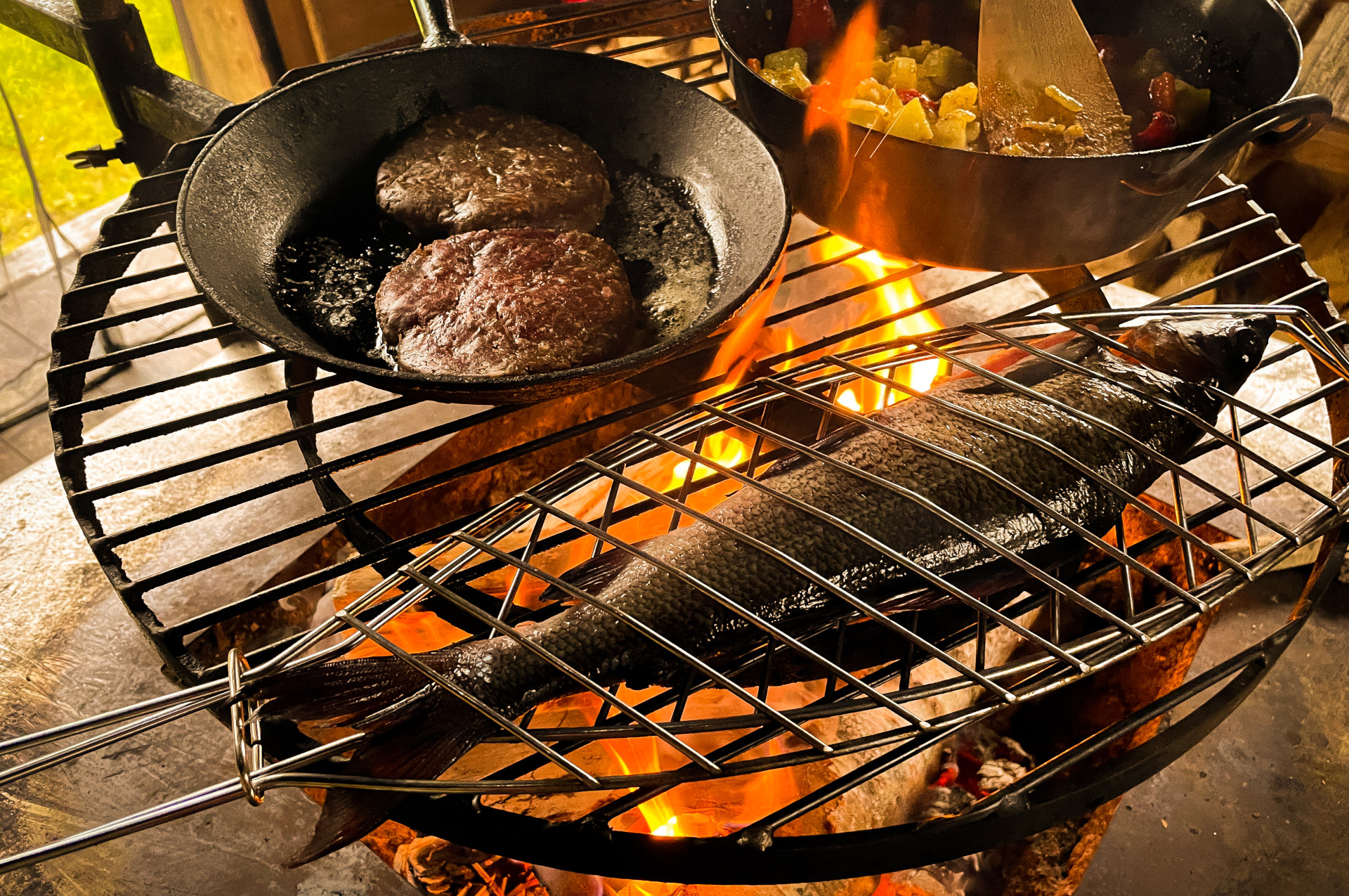 Rendierburger bereiden op het open vuur in de grillhut