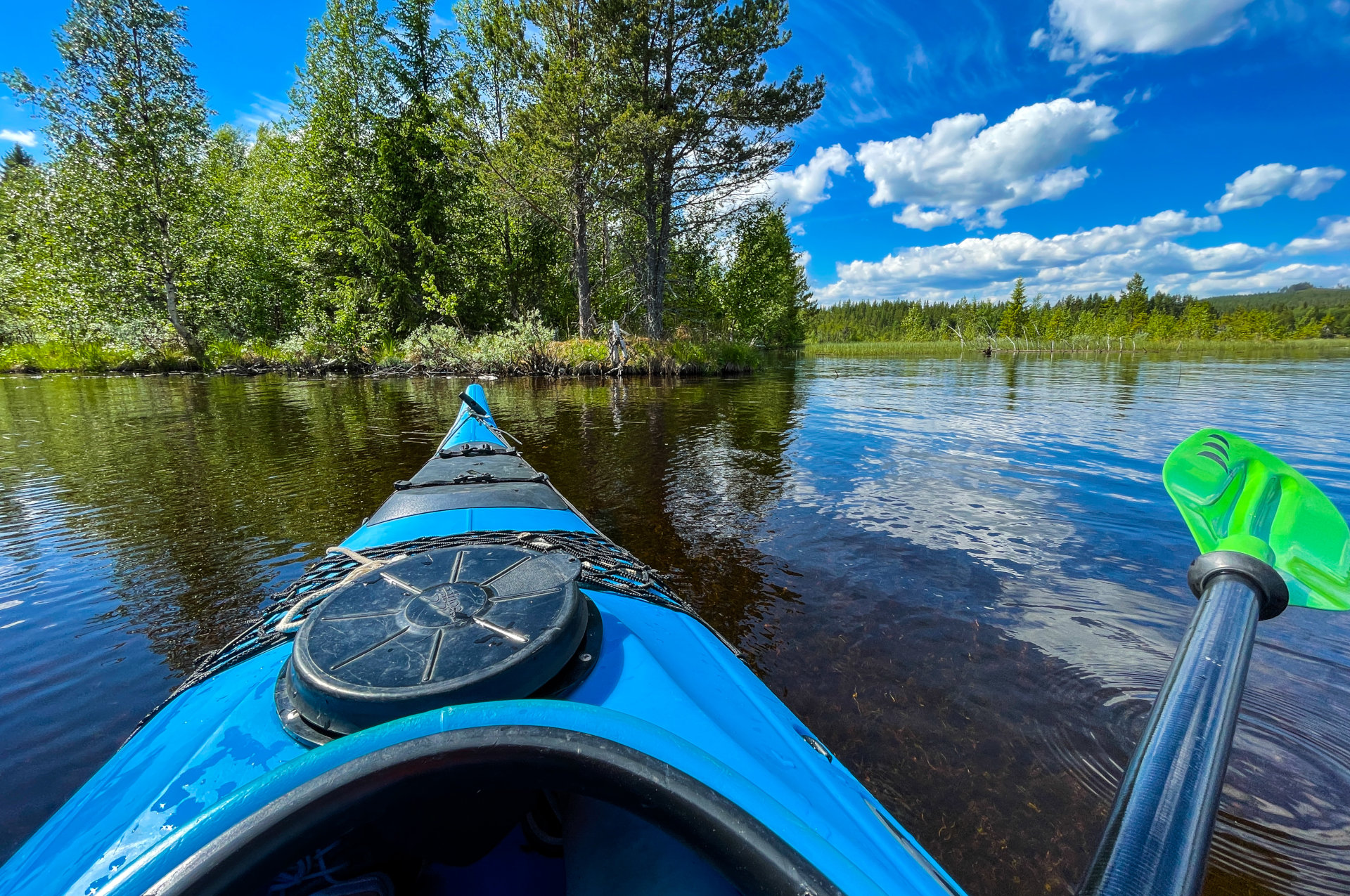 Peddelen met de Prijon-kajak op het meer bij de Ljungan