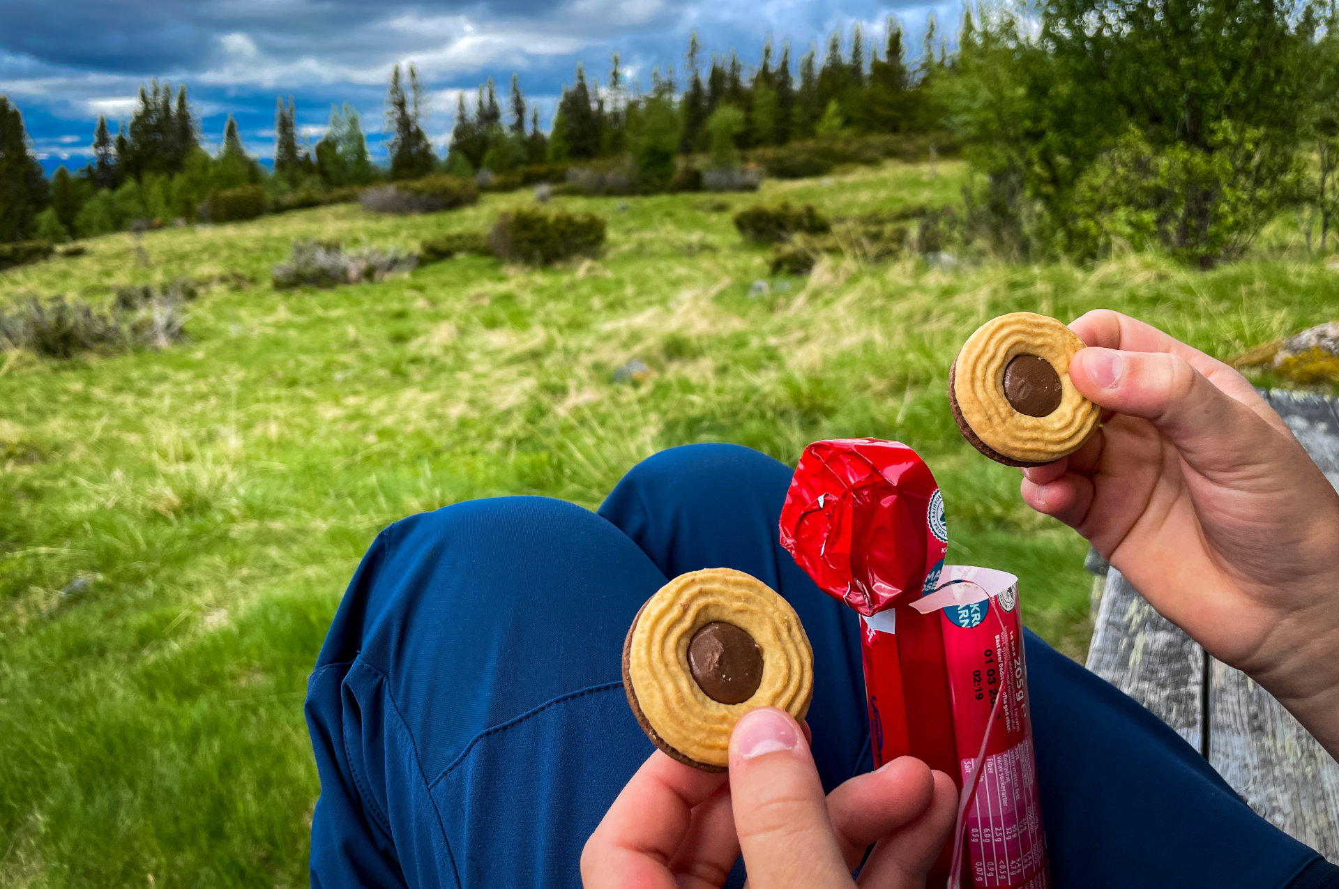 Heerlijke pauze tijdens het wandelen met koekjes