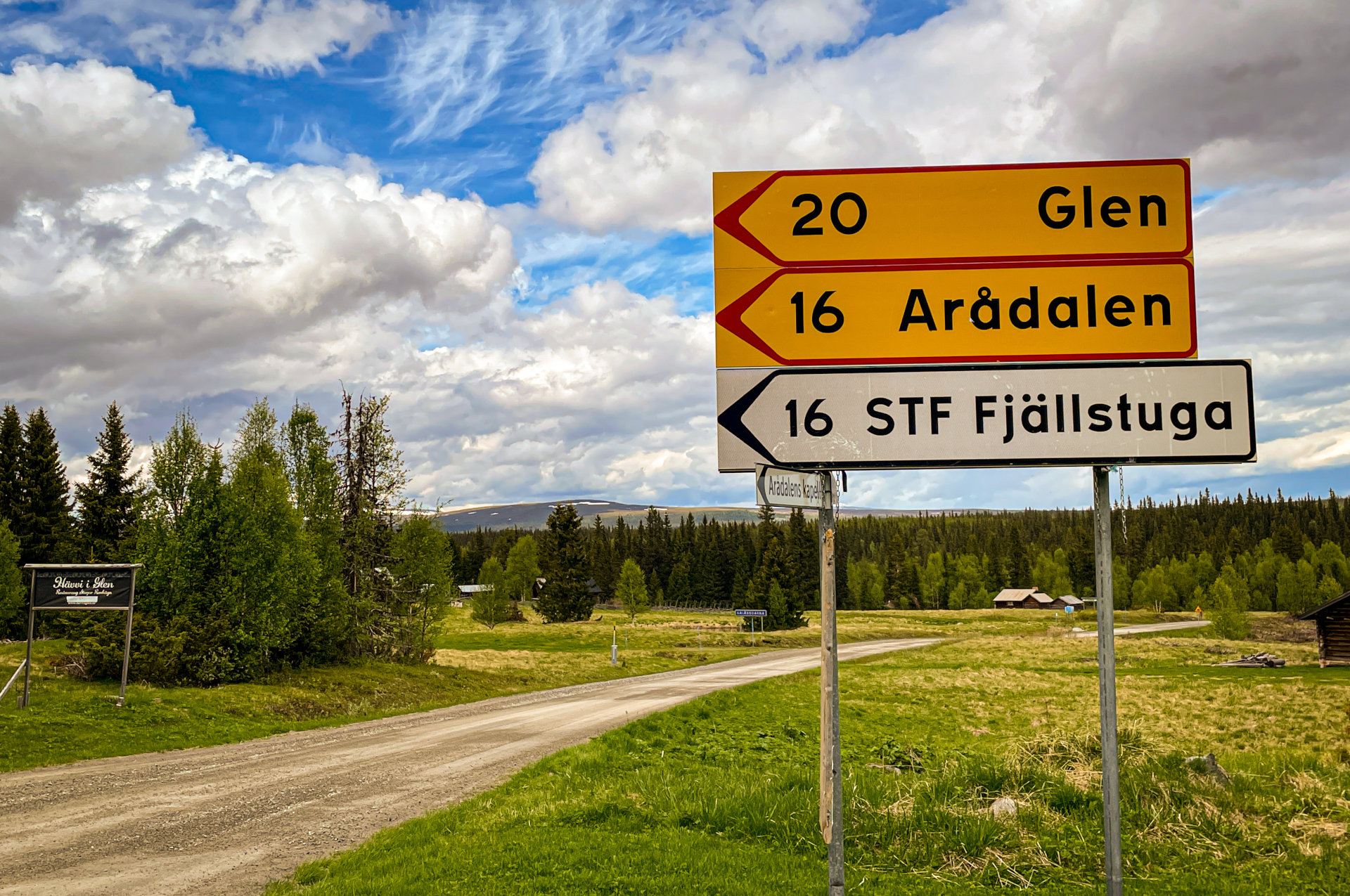 Wegwijzer in Galåbodarna bij het kruispunt