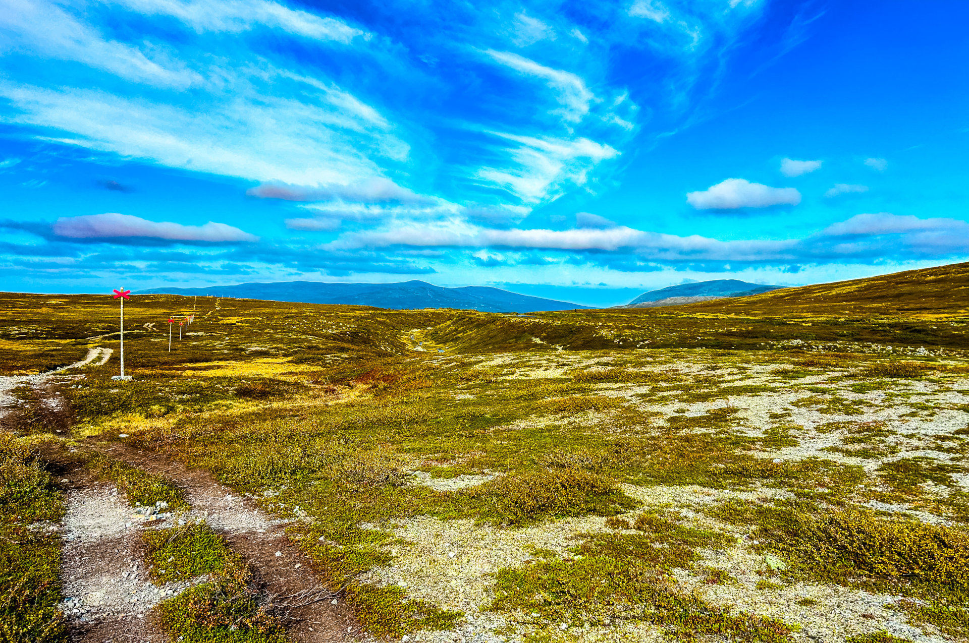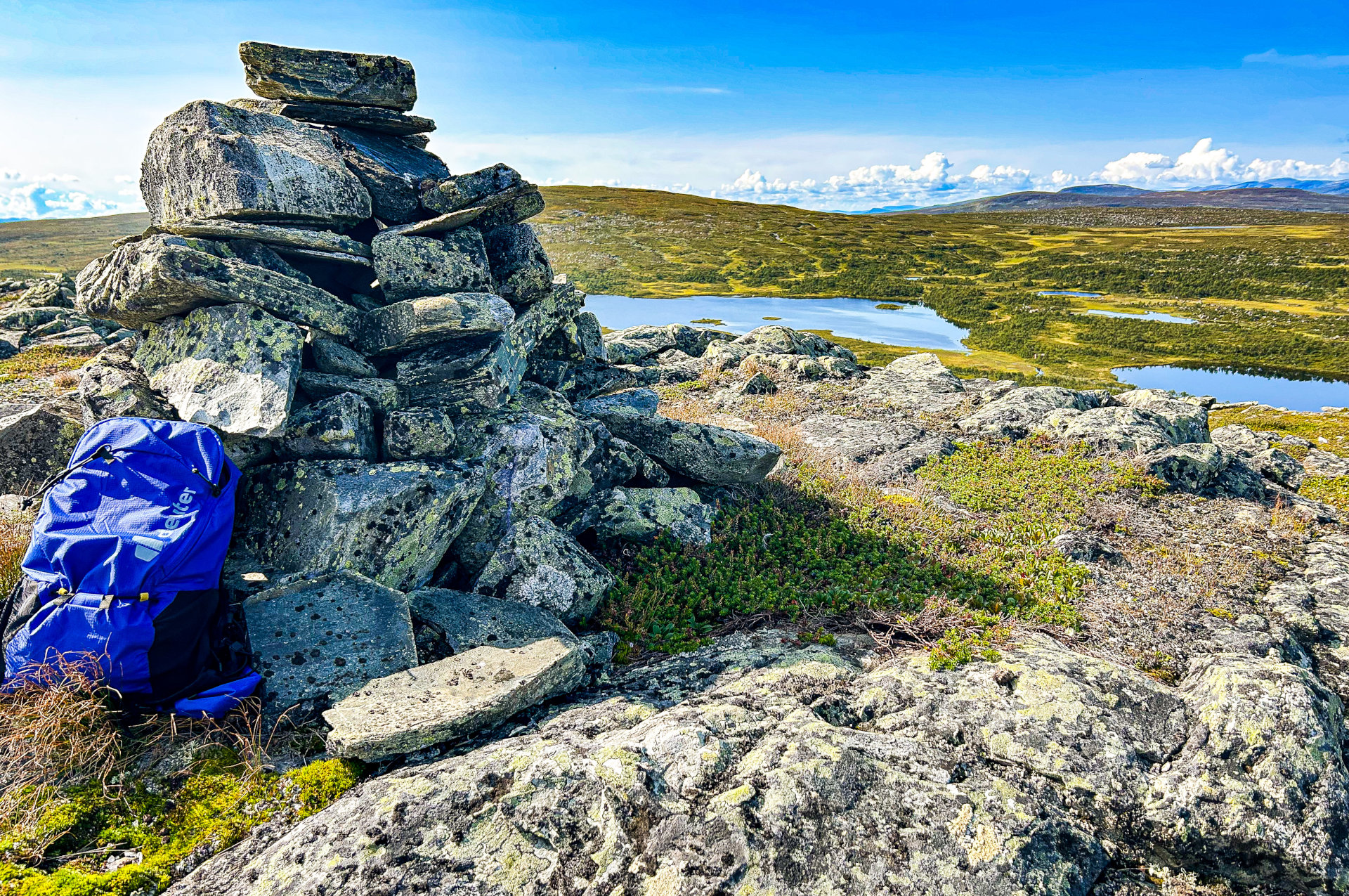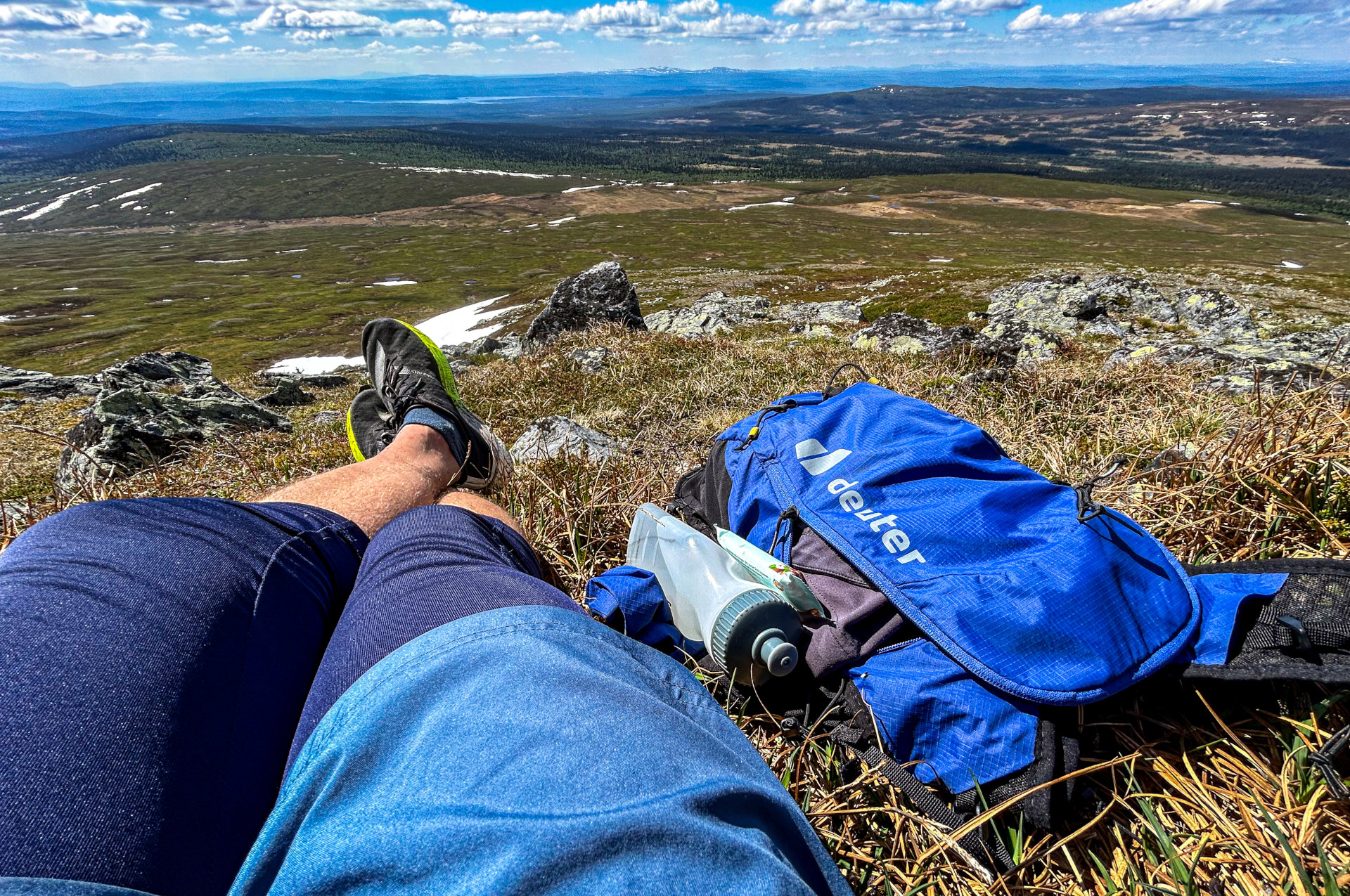 Wenn die 11 km hin und zurück zum Hundshögen zu kurz sind, können Trailrunner nach Belieben eine Rundtour mit anderen kleinen Gipfeln oder Seen laufen. Hier kann man in fast alle Richtungen über Heide durchsetzt von Geröll den Lauf fortsetzen. In diesem Beispiel wurde die Route als Rundtour über den Hästryggen gelaufen.